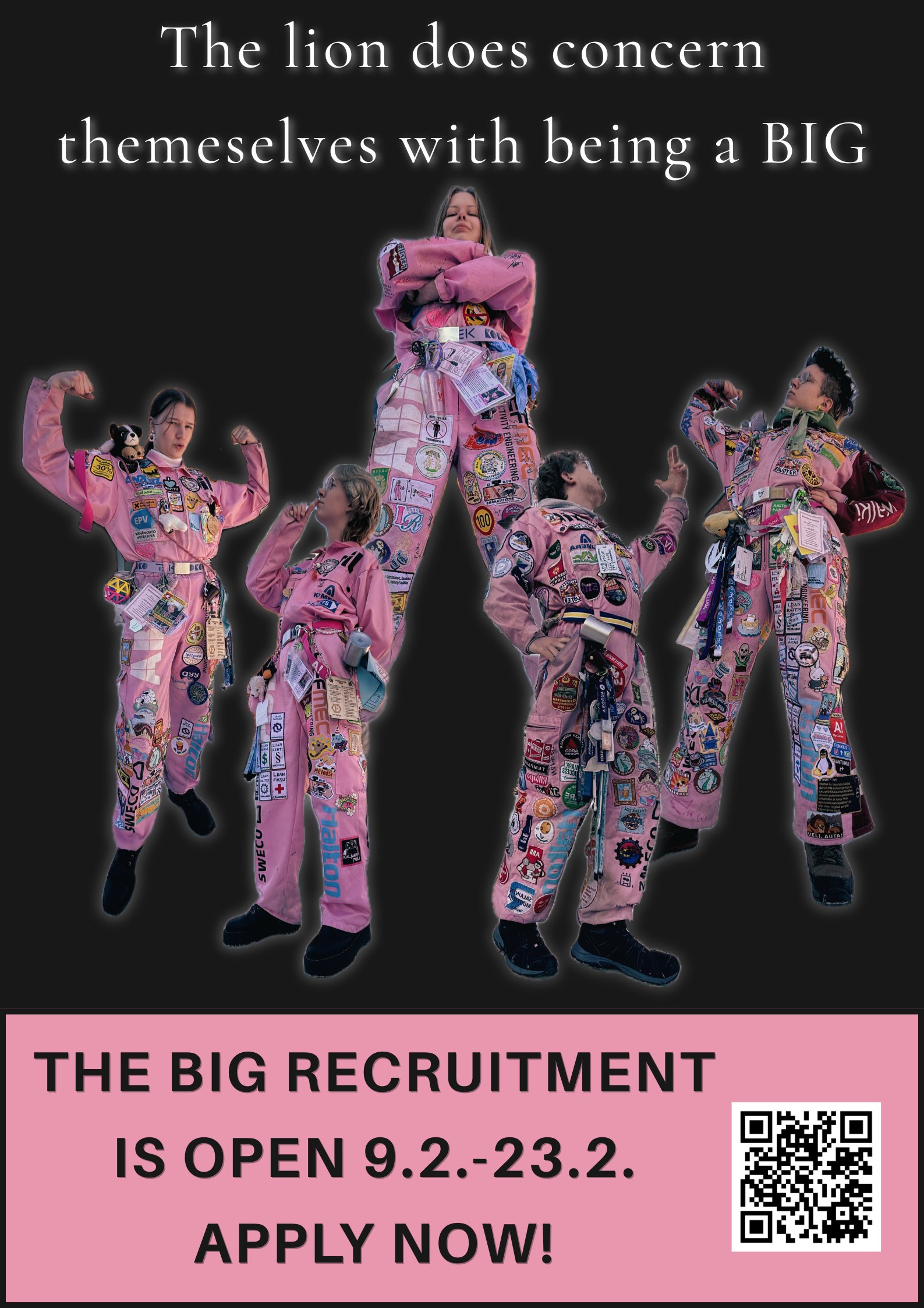 As a BIG, you get to help create an amazing orientation week for new students. You’ll also get to experience the best parts of orientation week again, this time from the BIG’s perspective. In addition, lots of great events are organized specifically for BIGs, and the BIG Committee (ITMK) makes sure ISOs have a fun time. As a BIG, you’ll guide freshmen through their entire first year, all the way to the possible Wappu!